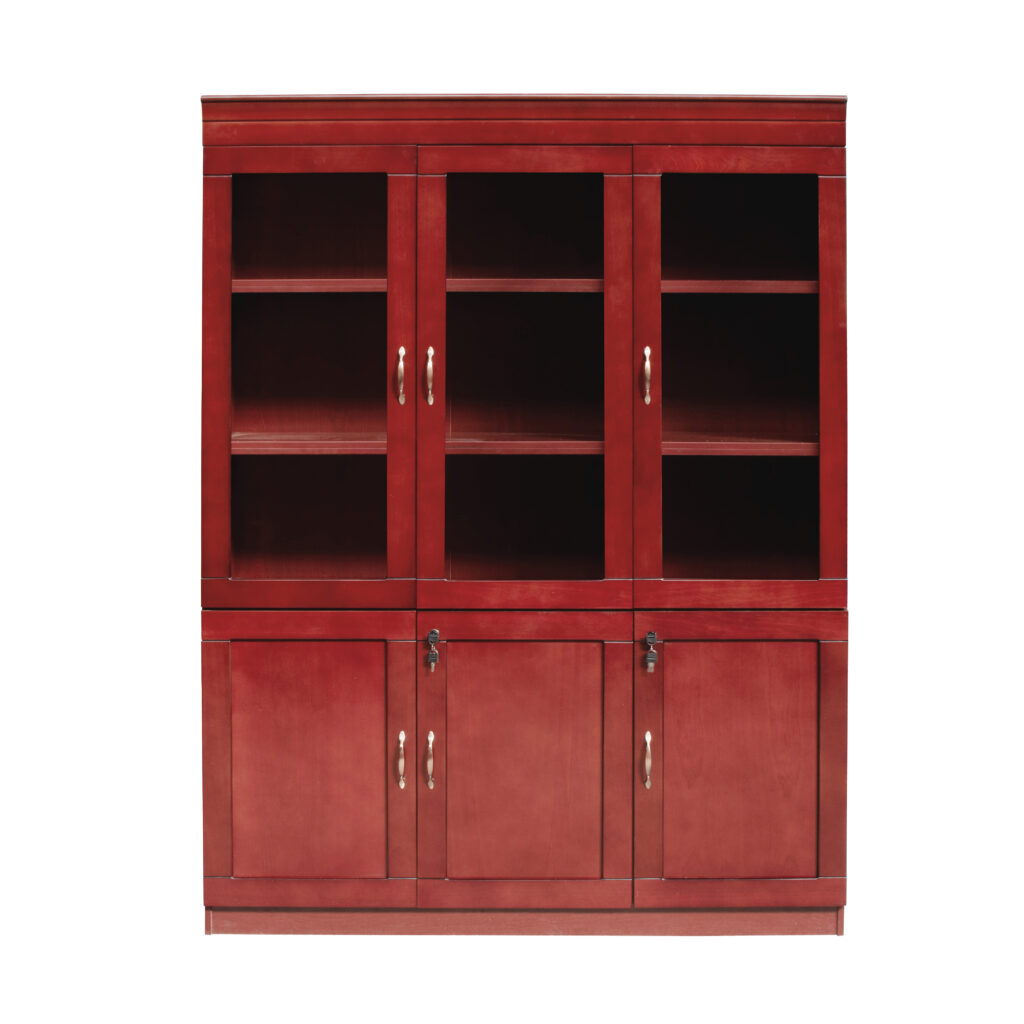 Ample Storage Space: Six spacious compartments – three glass-front display areas and three lockable lower cabinets.